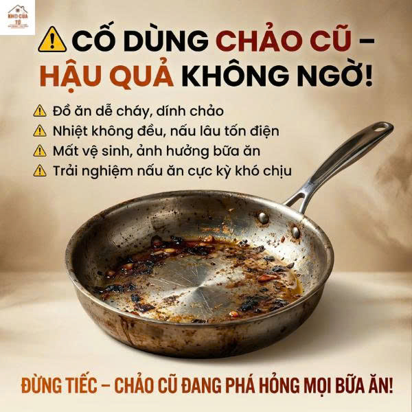 Nhiều người nghĩ rằng đang tiết kiệm khi chưa thay chảo, nhưng thực tế lại đang “trả giá” bằng thời gian và trải nghiệm mỗi ngày.