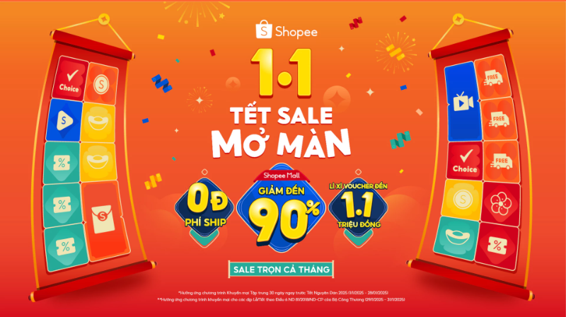 Shopee chính thức khởi động chương trình “Tết Sale Mở Màn” (1.1 Tết Sale Mở Màn) – một sự kiện mua sắm trực tuyến lớn nhất đầu năm nhằm giúp người dùng đón Tết thật rực rỡ, tiết kiệm và đầy hứng khởi. Đây là một phần trong chuỗi ưu đãi mùa Tết kéo dài trong tháng 1, với vô vàn deal hấp dẫn và mã giảm giá giá trị lớn.
