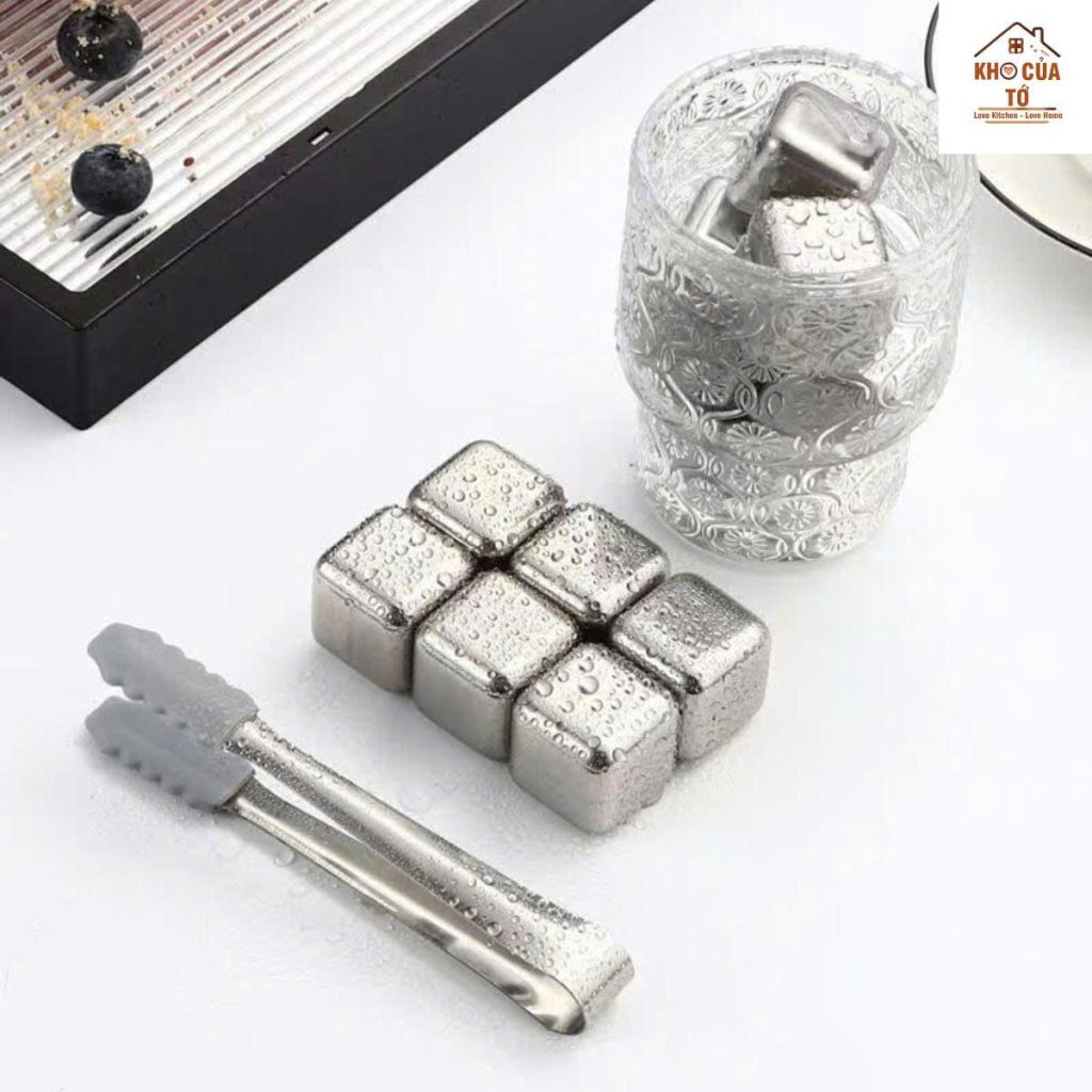 - ✔ Không làm loãng đồ uống – Đây là lý do quan trọng nhất. Khi bạn uống rượu vang, whisky, cocktail hoặc cà phê, đá inox giúp giữ lạnh mà vị nước không bị nhạt.