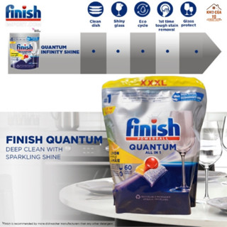 - Là dòng viên rửa bát cao cấp nhất của Finish, tích hợp đầy đủ chức năng: rửa sạch, tẩy vết cháy, khử dầu mỡ, làm bóng và bảo vệ ly chén.