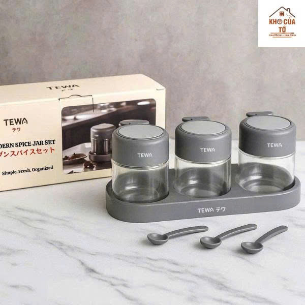 Bộ 3 lọ đựng gia vị thủy tinh TEWA Japan cao cấp – nắp kín khít, bền đẹp, giúp bếp luôn gọn gàng sang trọng. Model 80022 dung tích 350ml