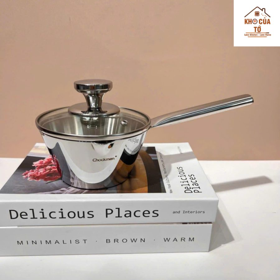 Nồi inox Quánh inox liền đáy Chockmen Đức size 13cm có nắp kính nấu sốt, thắng nước hàng, chiên, luộc – CKM27N