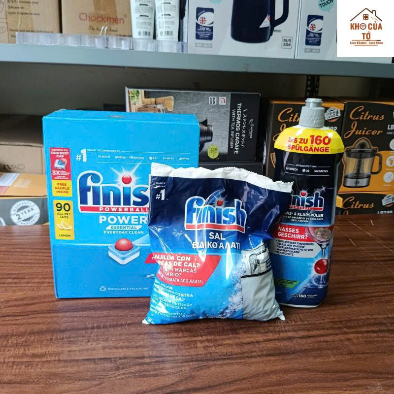 Bộ ba quyền lực Viên rửa, Muối, Nước bóng Finish – Giải pháp toàn diện cho máy rửa bát, sạch nhanh, chống cặn, bền máy!