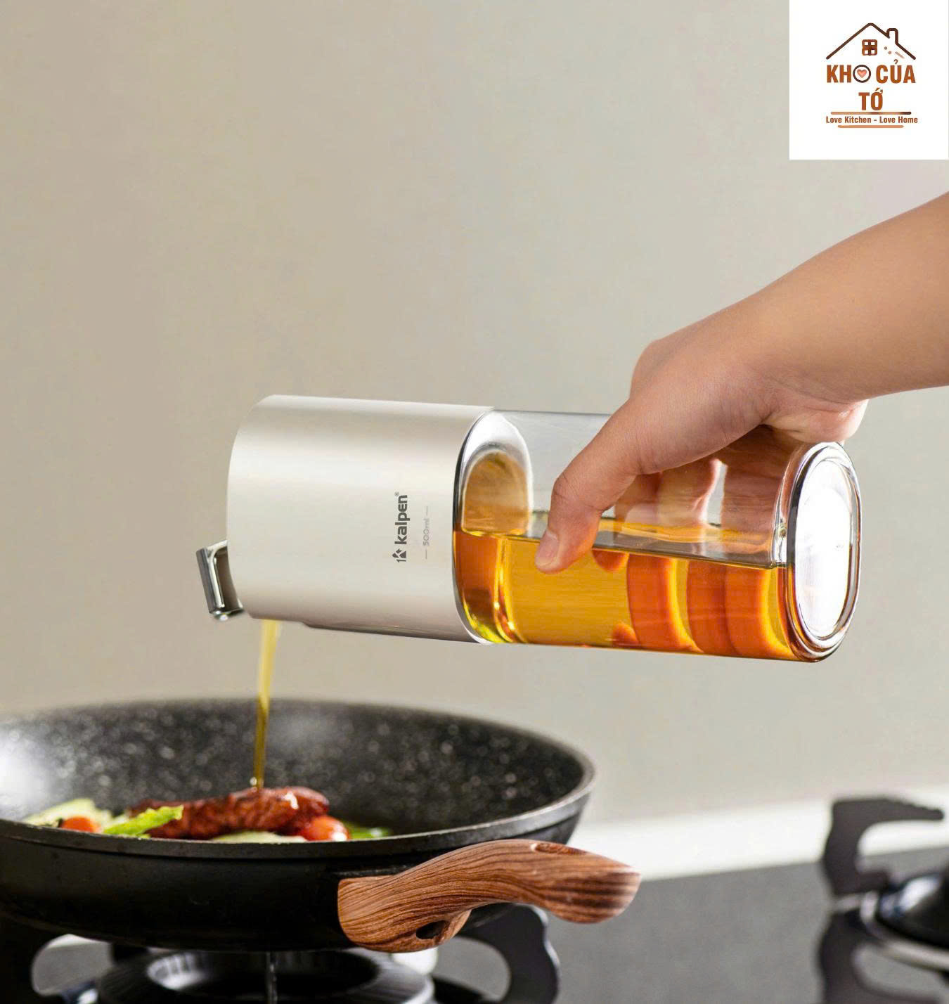 Bình đựng dầu, bình đựng gia vị Kalpen 500ml SB1 – thủy tinh Borosilicate, vòi inox 304, nắp tự động tiện lợi.