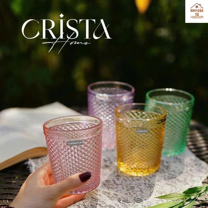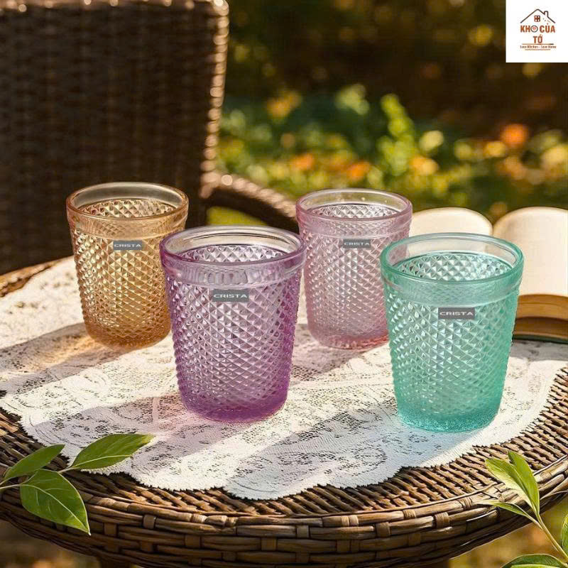 🌈 BỘ 4 CỐC THỦY TINH VÂN KIM CƯƠNG CRISTA 300ML – MIX MÀU CAO CẤP