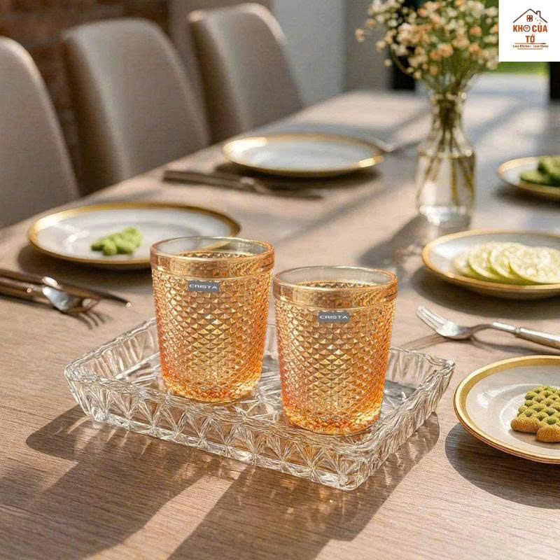 Không chỉ là cốc uống nước thông thường, bộ cốc vân kim cương Crista Home mang đến vẻ đẹp lấp lánh, sang trọng và hiện đại cho mọi không gian bàn ăn. Thiết kế vân kim cương tinh xảo giúp cốc bắt sáng cực tốt, nhìn long lanh dưới ánh đèn – dùng hằng ngày hay làm quà tặng đều rất đẹp.