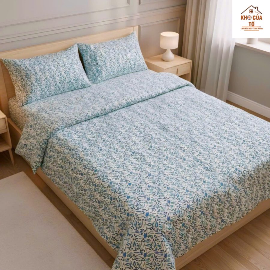 Bộ chăn ga chần cotton 100% kèm 2 vỏ gối KAWA Nhật cao cấp – chăn nhẹ ấm, ga chần bông, tặng 2 vỏ gối