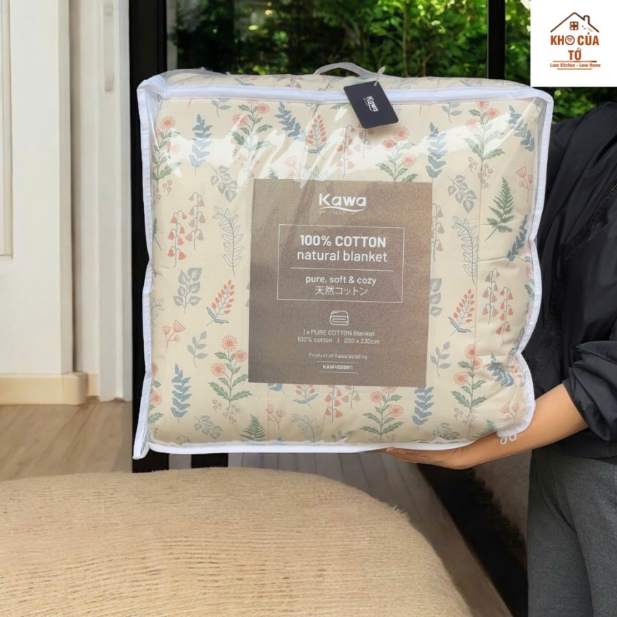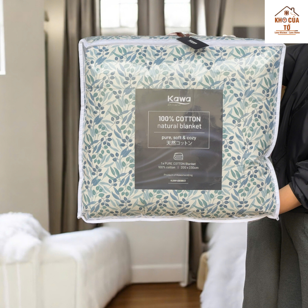 🛏️ SET CHĂN GA COTTON 100% KAWA NHẬT CAO CẤP – CHĂN NHẸ MÀ ẤM, TẶNG KÈM 2 VỎ GỐI 🎁