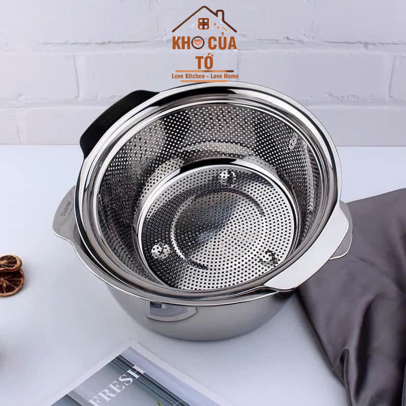 ✔️ Vừa có chức năng rổ inox thoát nước, vừa như chậu đựng thực phẩm – cực kỳ tiện dụng