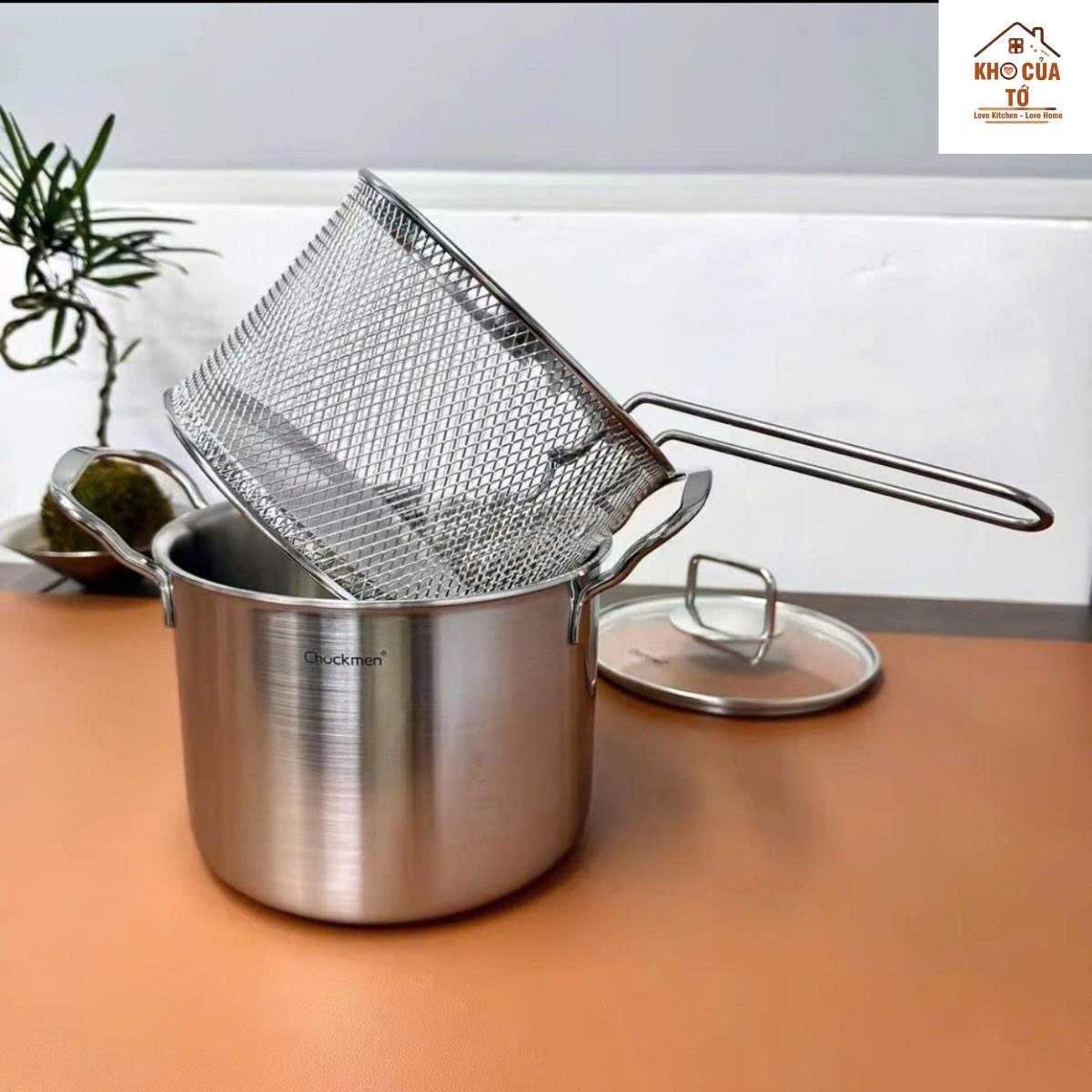 Nồi cao thành inox 316 Chockmen kèm giỏ lọc CKM445 – chiên rán tiện lợi, lọc dầu dễ dàng, bền đẹp và an toàn sức khỏe.