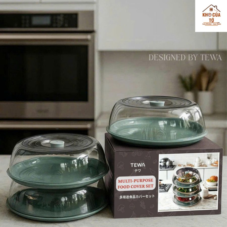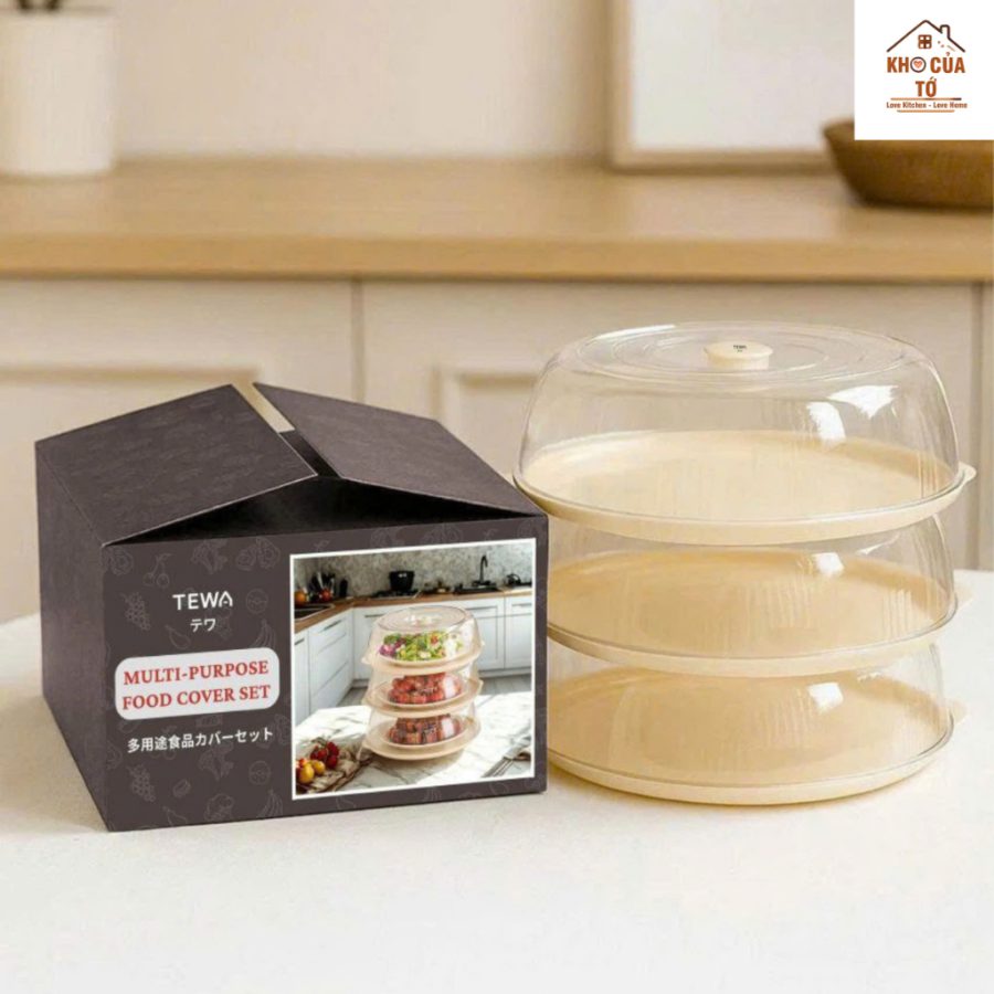 Set 3 hộp úp thức ăn xếp tầng TEWA Japan 28cm – Nhựa PET cao cấp, an toàn, gọn gàng, sang trọng cho căn bếp.