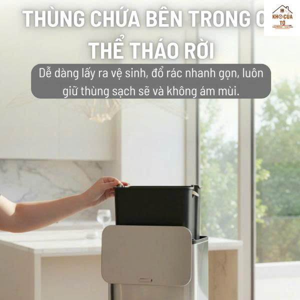 ✔️ Thùng nhựa ABS bên trong có thể tháo rời – đổ rác & vệ sinh dễ dàng